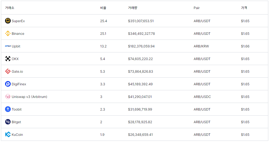 - 거래량 많은 거래소는 슈퍼엑스 25% / 바이낸스 15% / 업비트 13%